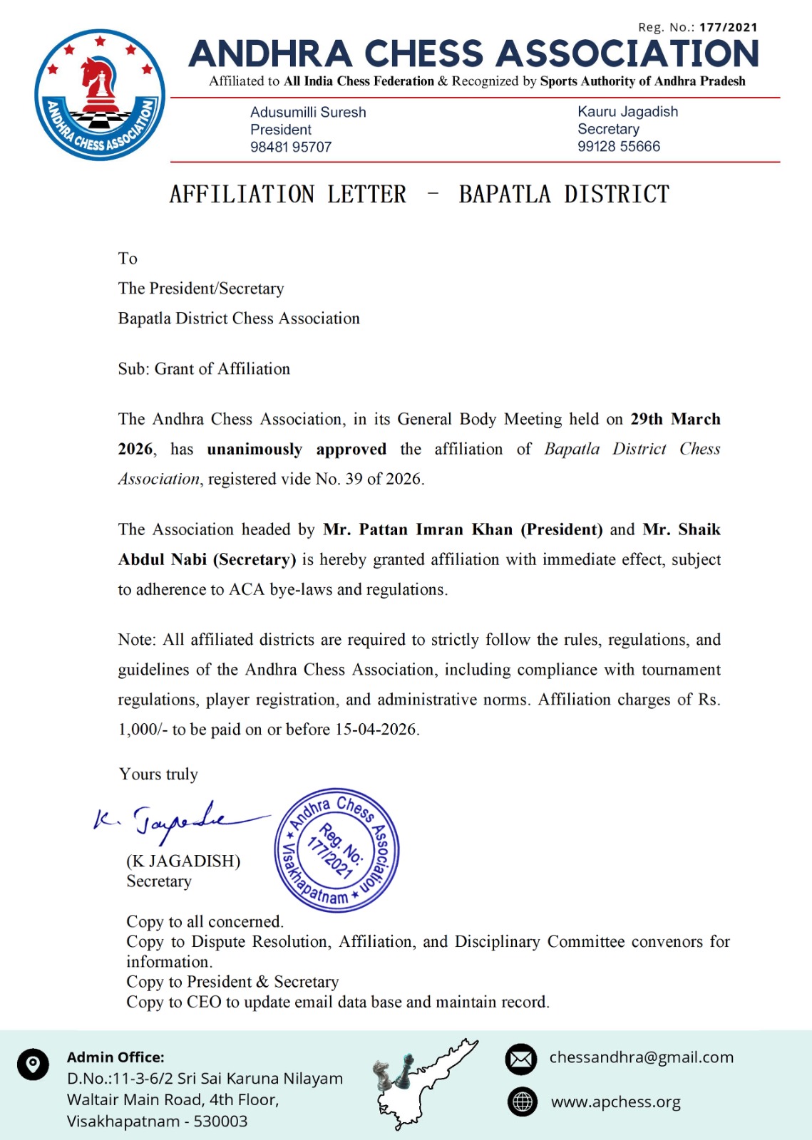 BAPATLA DISTRICT CHESS ASSOCIATION GOT AFFILIAT... 01-04-2026